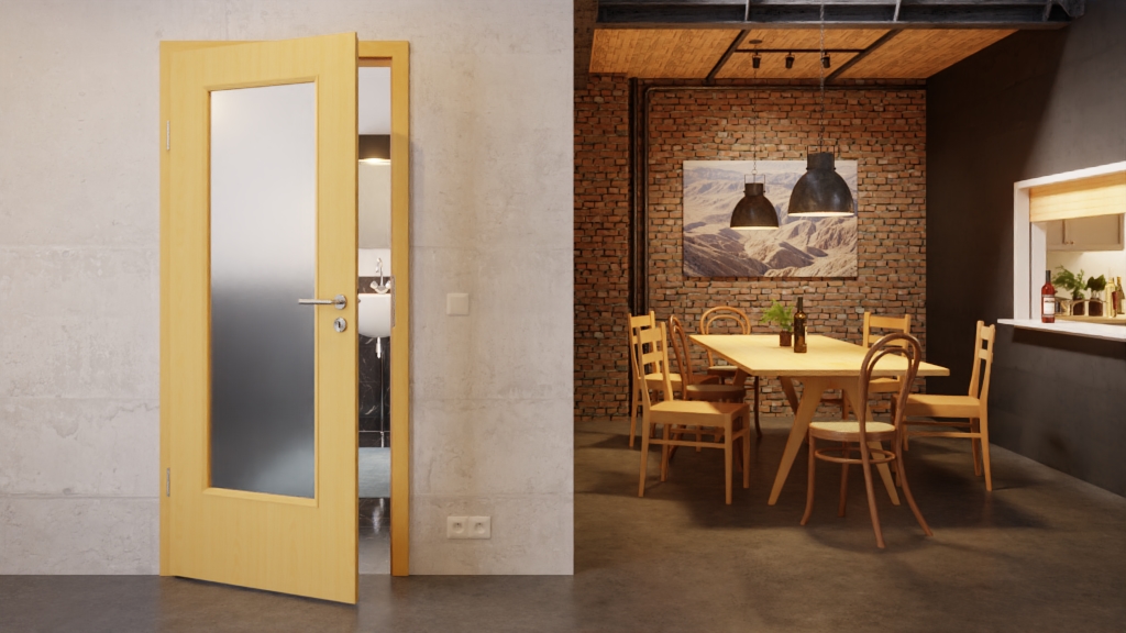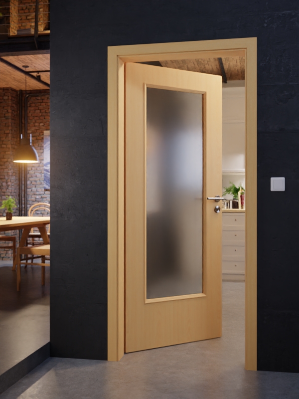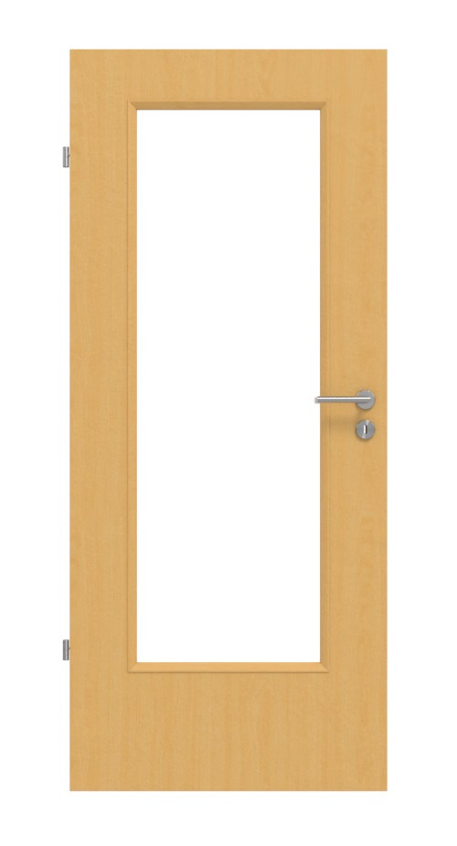 Jakość materiału i różnorodność charakterystycznych słojów sprawiają, że te drzwi są unikatowe. Charakterystyczny wygląd drzwi wewnętrznych z okleiną wspiera duży i prostokątny otwór świetlny.