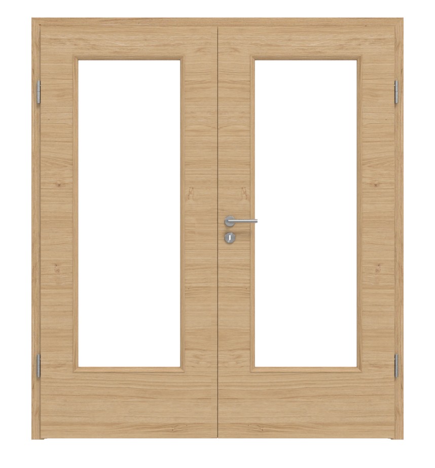 Furtura z drzwiami Kilsgaard z naturalnego drewna w dębie europejskiej astig Trend lakierowanej do Twoich drzwi podwójnych: