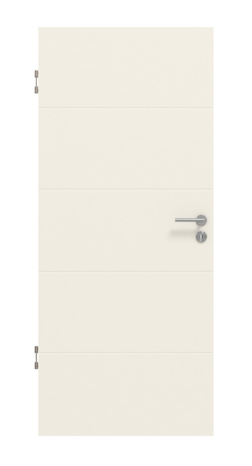 Po stronie mieszkalnej drzwi znajdują się na skrzydle w regularnych odstępach cztery listwy. Strona korytarza jest natomiast gładka.