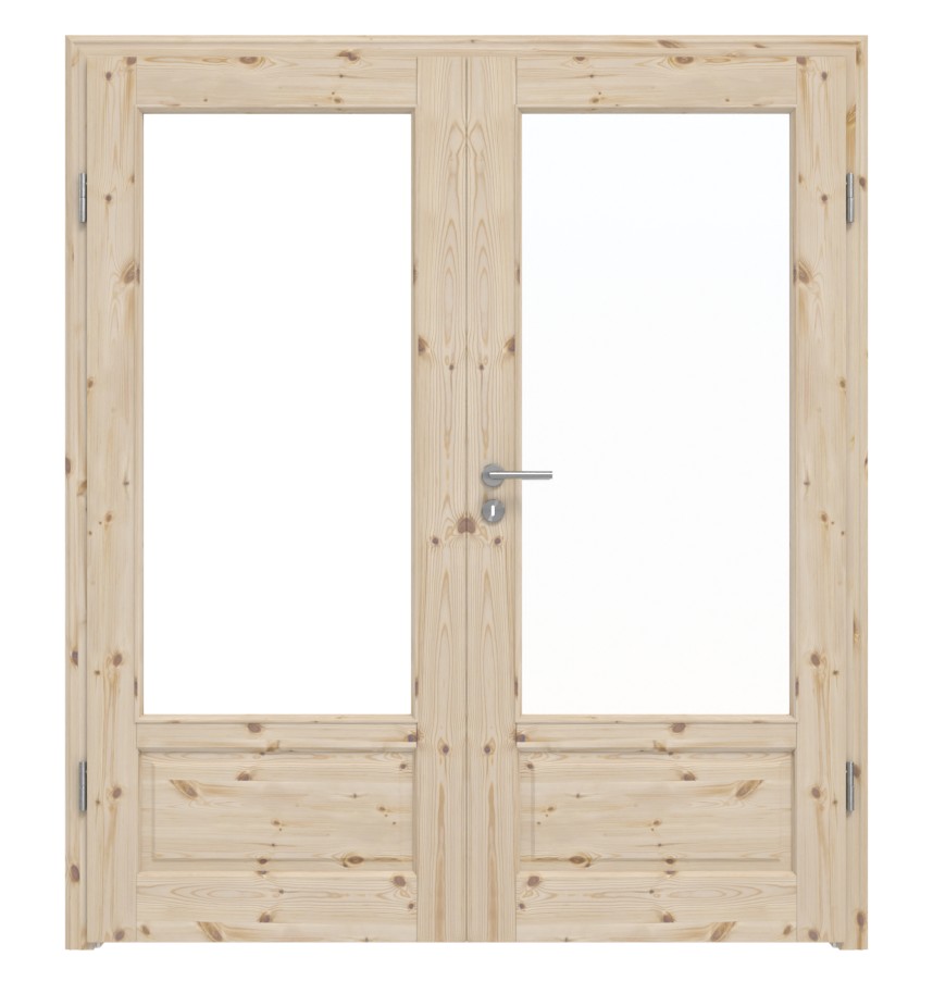 Atrakcyjne podwójne drzwi z litego drewna od Radex z drewna sosnowego: