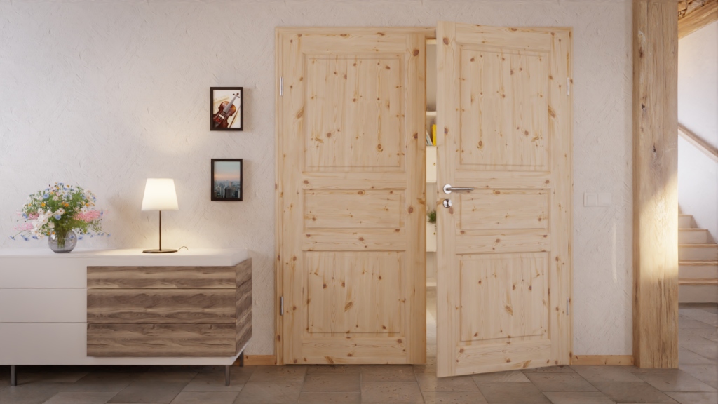 Zapraszające podwójne drzwi z litego drewna od Radex z drewna sosnowego: