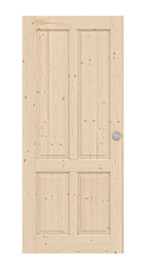 Cztery prostokątne, wydłużone kasetony dzielą skrzydło drzwi. Dwa górne kasetony zajmują większą część powierzchni. Dwa dolne kasetony dopełniają harmonijny ogólny wygląd drzwi. Profilowany fryz drzwiowy nawiązuje do tradycyjnego stylu wiejskiego.