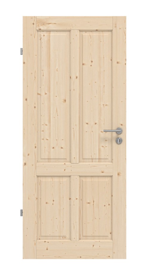 Cztery prostokątne, wydłużone kasetony dzielą skrzydło drzwi. Dwa górne kasetony zajmują większą część powierzchni. Dwa dolne kasetony dopełniają harmonijny ogólny wygląd drzwi. Profilowany fryz drzwiowy nawiązuje do tradycyjnego stylu wiejskiego.