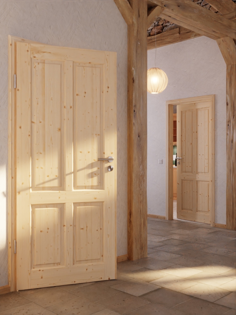Wysokiej jakości drzwi z litego drewna od Radex z sosny sękatej: