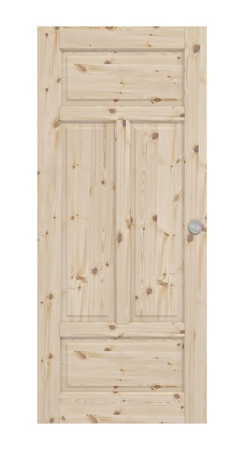 Skrzydło drzwiowe dzieli się na trzy części. Dwie pionowe kasety tworzą środek, który jest otoczony od góry i od dołu kolejnymi wypełnieniami. Klasyczny akcent stylu wiejskiego nadaje profilowana listwa drzwiowa.
