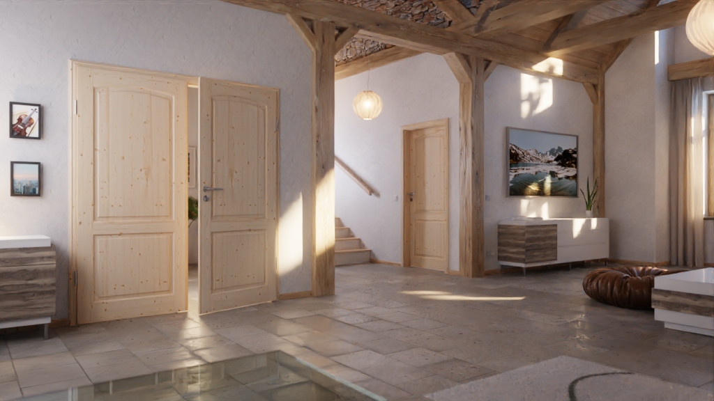 Surowa powierzchnia daje Ci kreatywną swobodę, aby dostosować podwójne drzwi według własnych upodobań za pomocą preferowanego lakieru. Możesz również zdecydować się na bezbarwne lakierowanie lub olejowaną wersję, która podkreśla wyjątkowy i niepowtarzalny rysunek drewna.