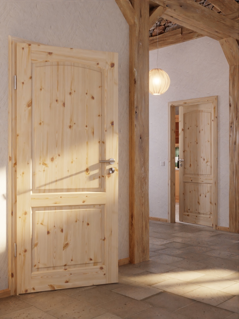 Estetyczne drzwi z litego drewna od Radex z sosny sękatej: