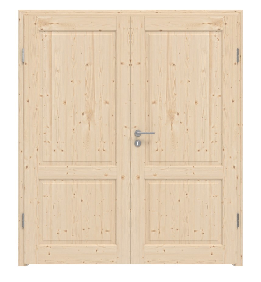 Klasyczne drzwi podwójne z litego drewna od Radex z drewna świerkowego: