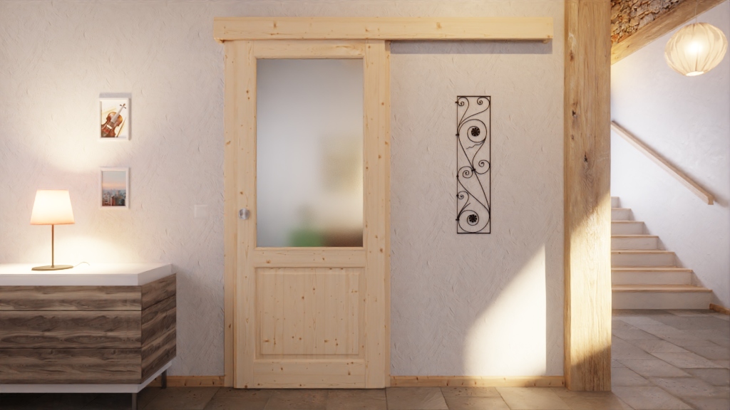 Wysokiej jakości przesuwne drzwi z litego drewna od Radex z sękatej sosny:
