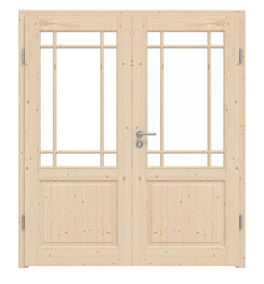 Atrakcyjne drzwi podwójne z litego drewna od Radex z drewna świerkowego: