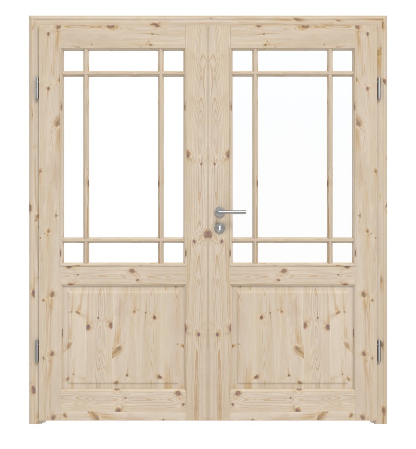Estetyczna ościeżnica z drewna sosnowego marki Radex do Twoich 2-skrzydłowych drzwi z litego drewna:
