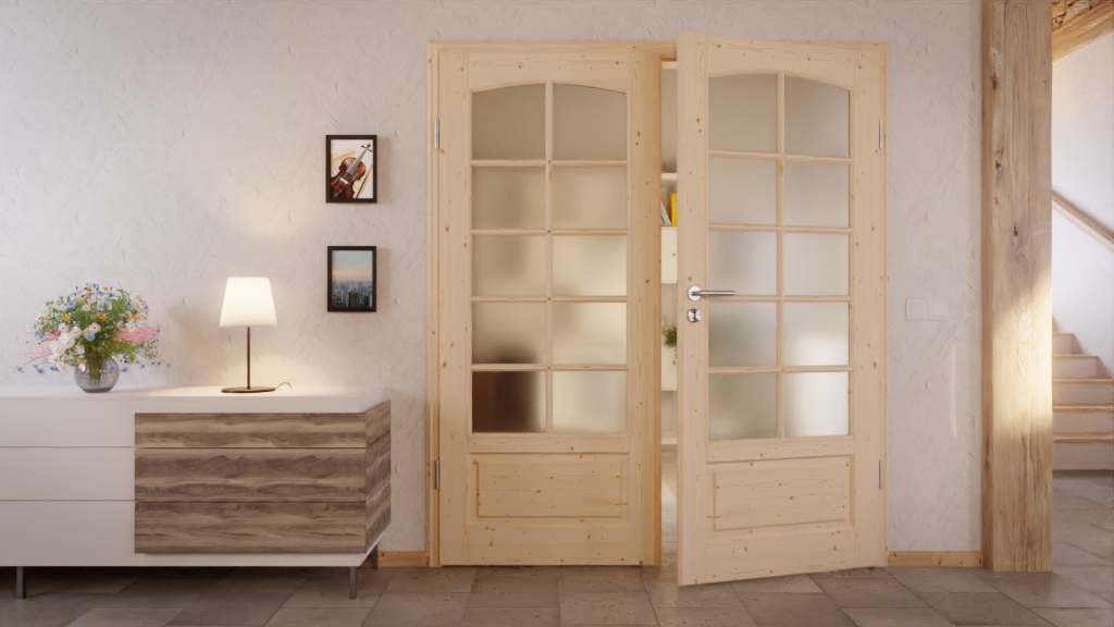 Harmonijna ościeżnica z drewna świerkowego od Radex do Twoich drzwi podwójnych z litego drewna: