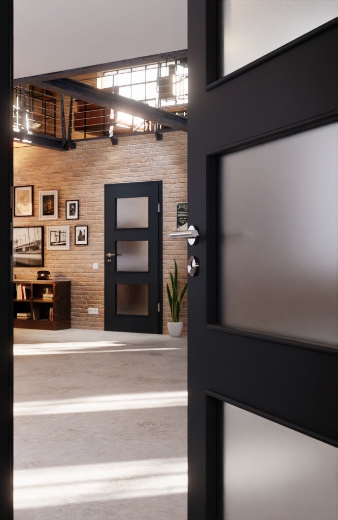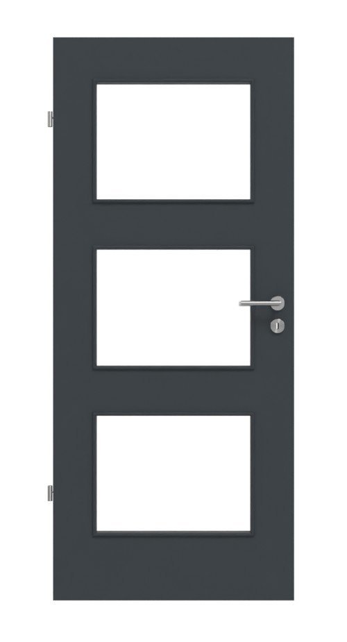 Dzięki trzem dużym wycięciom na szyby możesz cieszyć się pomieszczeniami pełnymi światła. Ciemna powierzchnia wygląda elegancko dzięki matowemu wykończeniu.