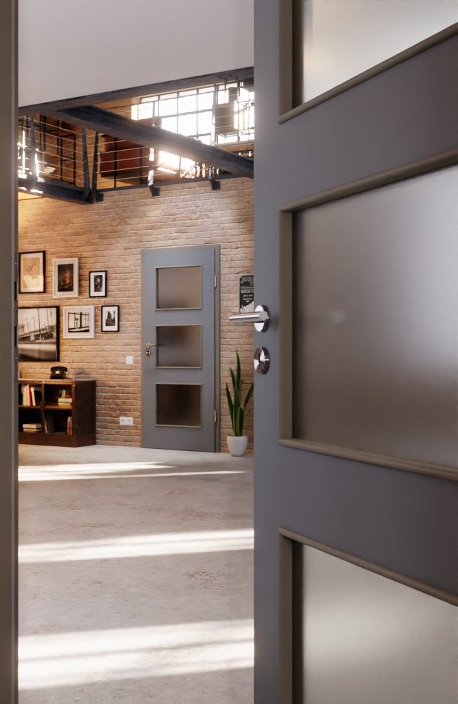 Estetyczny model drzwi z trwałą powierzchnią laminatową w ultramatowym kolorze szarym: