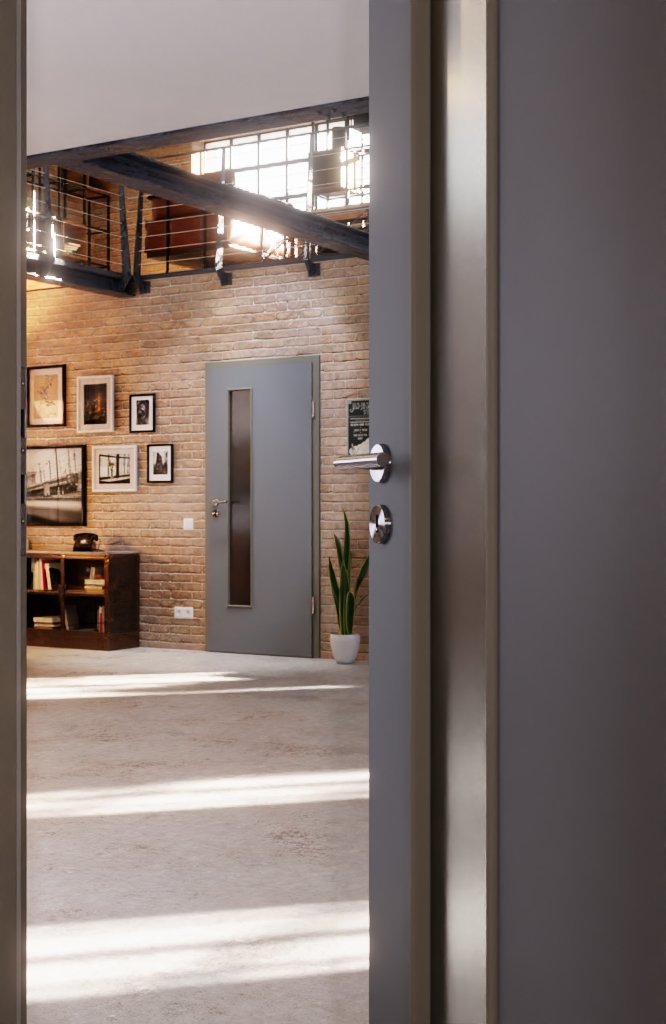 Estetyczny model drzwi z trwałą powierzchnią laminatową w ultramatowym kolorze szarym: