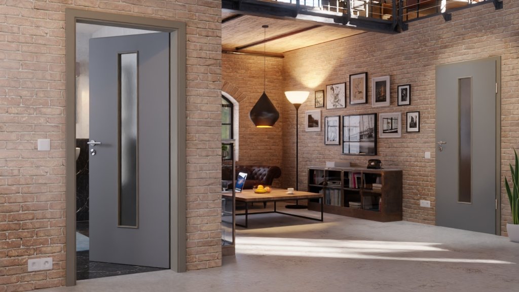 Drzwi wewnętrzne LA 24 w kolorze ultramatowy szary stalowy dla stylowej atmosfery.