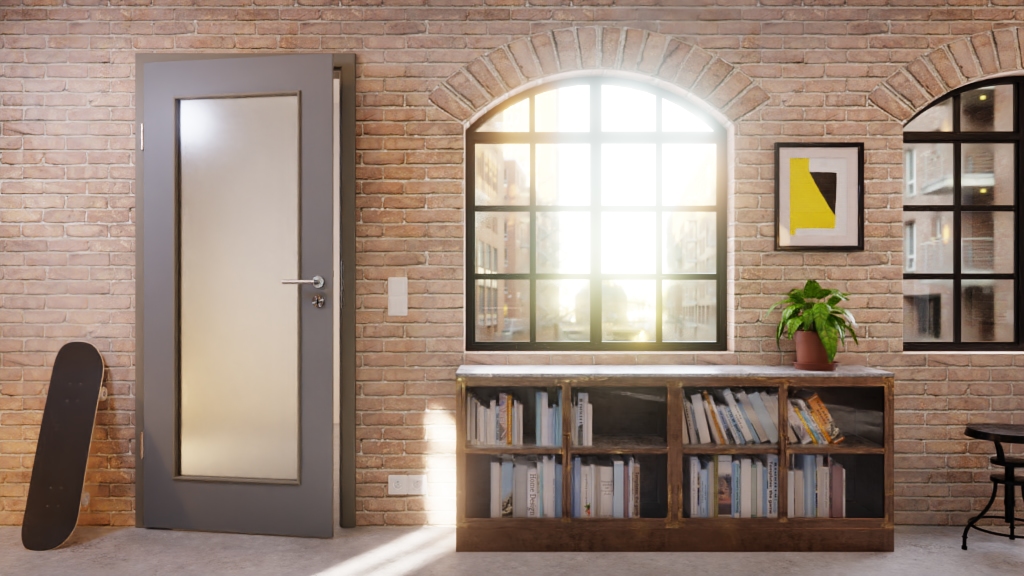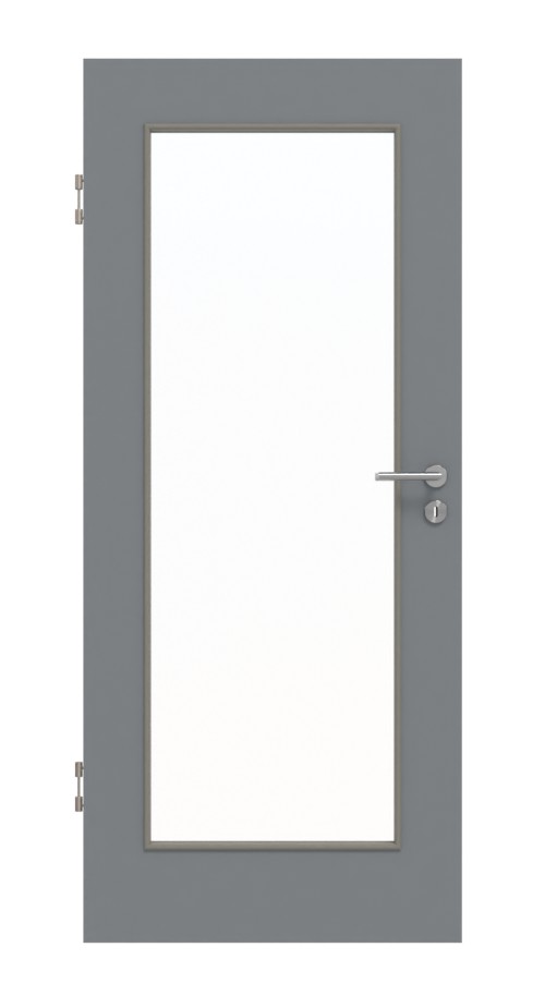 Wycięcie na szybę doda niewymuszonego luzu jasnoszarym skrzydłom drzwiowym. Dzięki satynowej powierzchni model ten przyciąga wzrok w każdym pomieszczeniu.