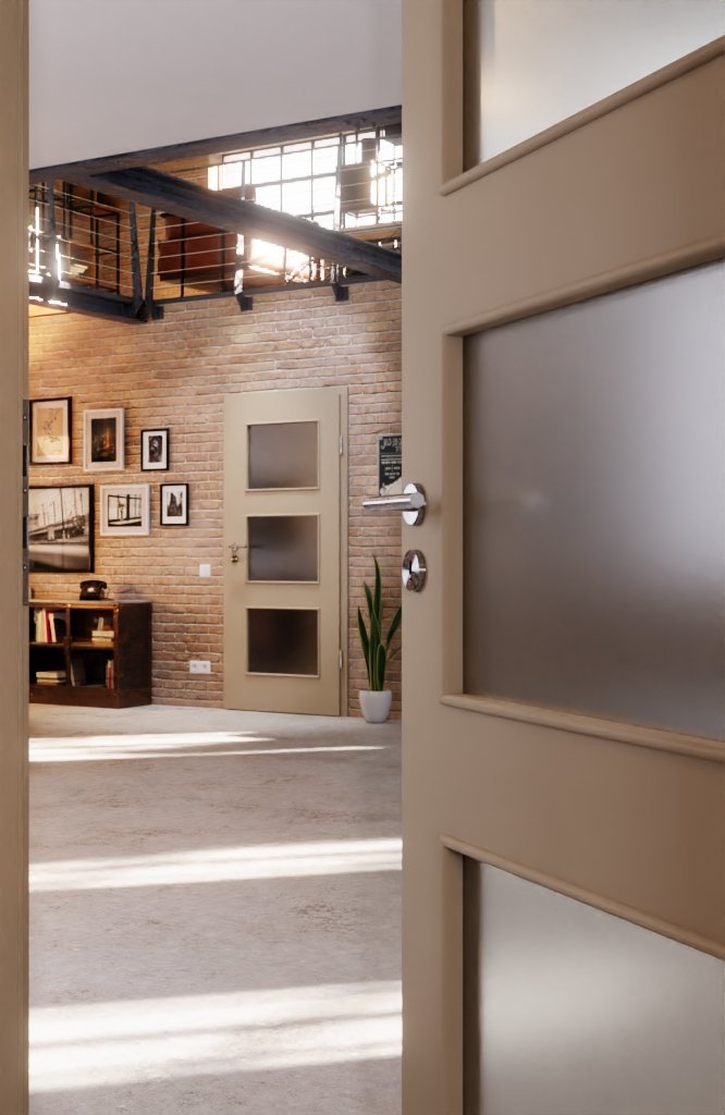 Łatwa w pielęgnacji wewnętrzna drzwi z odporną na ścieranie powierzchnią w ultramatowym taupe: