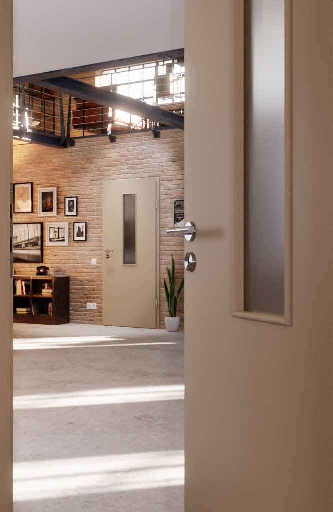 HÖRMANN drzwi wewnętrzne ultramatowy taupe (kolor ciemnoszaro-brązowy) Duradecor Proline Concepto z przeszkleniem LA 4