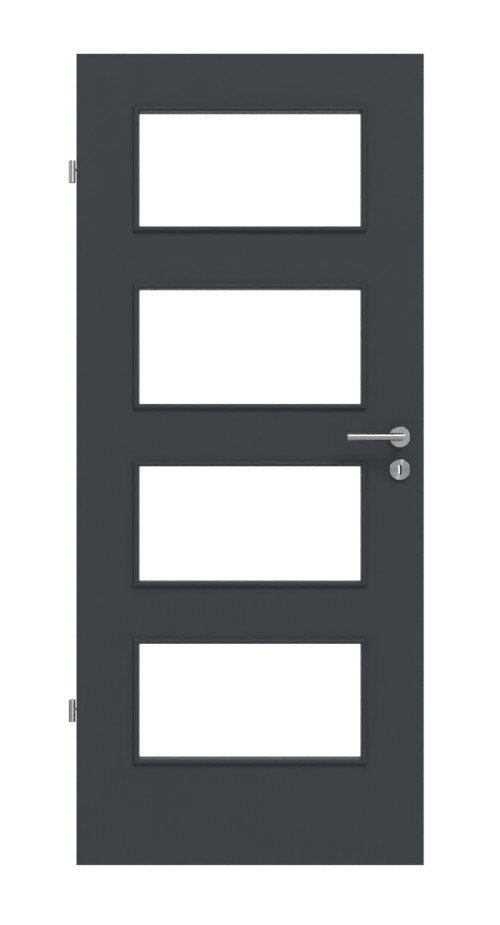Połączenie wycięć świetlnych i satynowej powierzchni w stylowym kolorze antracytowym zapewnia elegancki wystrój wnętrza. Cztery prostokątne wycięcia w szkle zapewniają dużą ilość światła i tym samym przyjazną atmosferę w Twoim domu.