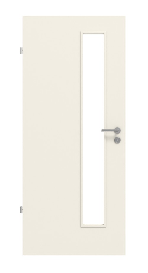 Kwadratowe okno świetlne z nałożonymi listwami szklanymi tworzy nowoczesną atmosferę. Znajduje się po stronie zamka, co zapewnia więcej światła przy zamku i klamce. Ponadto, dzięki wysokości, od razu widać, kto znajduje się po drugiej stronie drzwi. Ta funkcja jest szczególnie przydatna w mocno uczęszczanych miejscach, takich jak biura czy kuchnie.