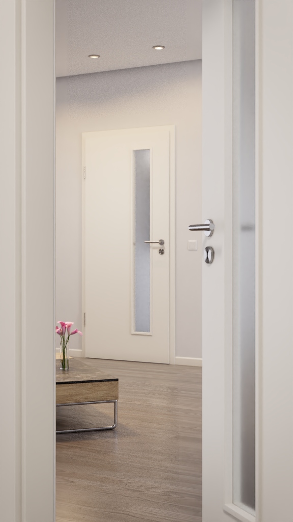 Dzięki szklanym wariantom od przezroczystego do matowego uzyskujesz odpowiedni widok na swoje pomieszczenia. Listwy są kolorystycznie dopasowane do drzwi.