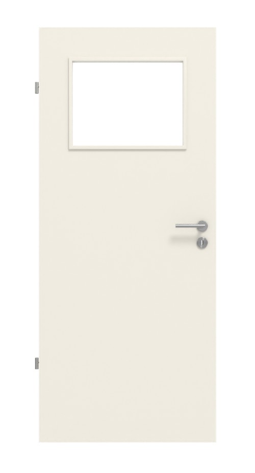 Prostokątny przeszklenie z nałożonymi listwami szklanymi tworzy nowoczesną atmosferę. Ozdabia górną część drzwi. Dzięki temu na pierwszy rzut oka ukrywa widok na Twoje pomieszczenie, ale wpuszcza światło z góry.