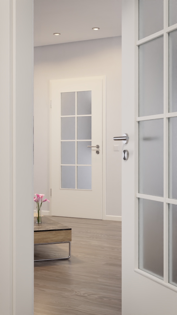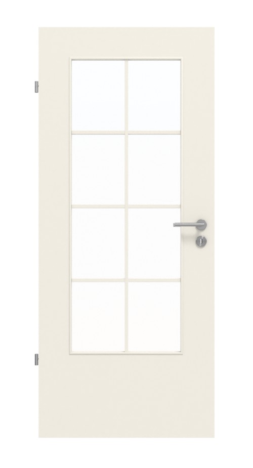 Jakość marki w przystępnej cenie: Te drzwi wewnętrzne CPL DuriTop z serii Optima są imponującym przykładem tego, jak mocne i żywe mogą być dekoracje w kolorze bieli Uni w połączeniu z listwą szklaną.