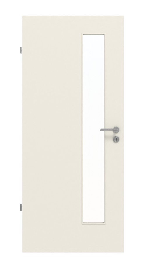 Jakość marki w przystępnej cenie: Te drzwi wewnętrzne CPL DuriTop z serii Optima są imponującym przykładem tego, jak mocne i żywe mogą być dekoracje w kolorze bieli Uni w połączeniu z listwą szklaną.