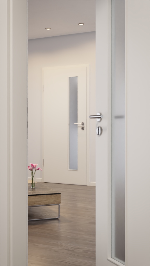 Szczególną uwagę przykuwa otwór świetlny w drzwiach. Dzięki niemu pomieszczenie wydaje się optycznie większe. Oprócz nowoczesnych rodzajów szkła, takich jak Mastercarree lub satynowane, dostępne są również klasyczne warianty, takie jak szkło przezroczyste. Niezbędną wytrzymałość zapewnia rama z twardego drewna.