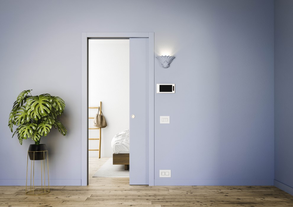 Wyrafinowane aranżacje wnętrz: System drzwi przesuwnych Unico Luce od Eclisse do montażu w suchej zabudowie to praktyczne rozwiązanie przestrzenne.