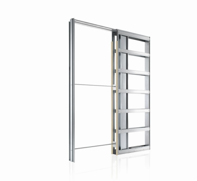 System drzwi przesuwnych nadaje się do montażu jednoskrzydłowych drzwi drewnianych w suchej zabudowie. Boki systemu biegnącego w ścianie muszą być obudowane.