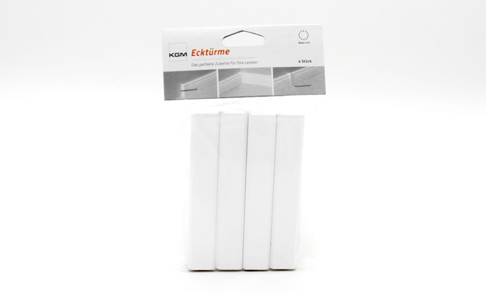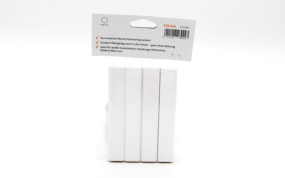 Elementy łączące można dowolnie skracać oraz malować. Nadają się również do profilu listwy przypodłogowej w stylu berlińskim. Użyta farba jest bezrozpuszczalnikowa i o niskim zapachu. Dzięki klejowi do listew przypodłogowych lub klejowi do drewna, te łączniki można łatwo zamontować.
