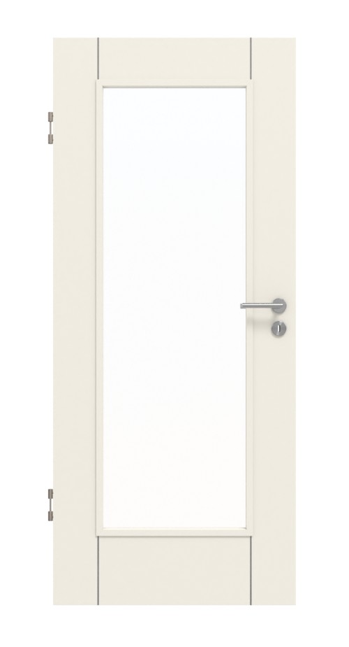 Duże przeszklenie centralnie umiejscawia drzwi. W standardowej konfiguracji z przezroczystym szkłem, można wybrać siedem innych rodzajów szkła (za dodatkową opłatą). Nałożone listwy szklane stylowo otaczają wypełnienie.
