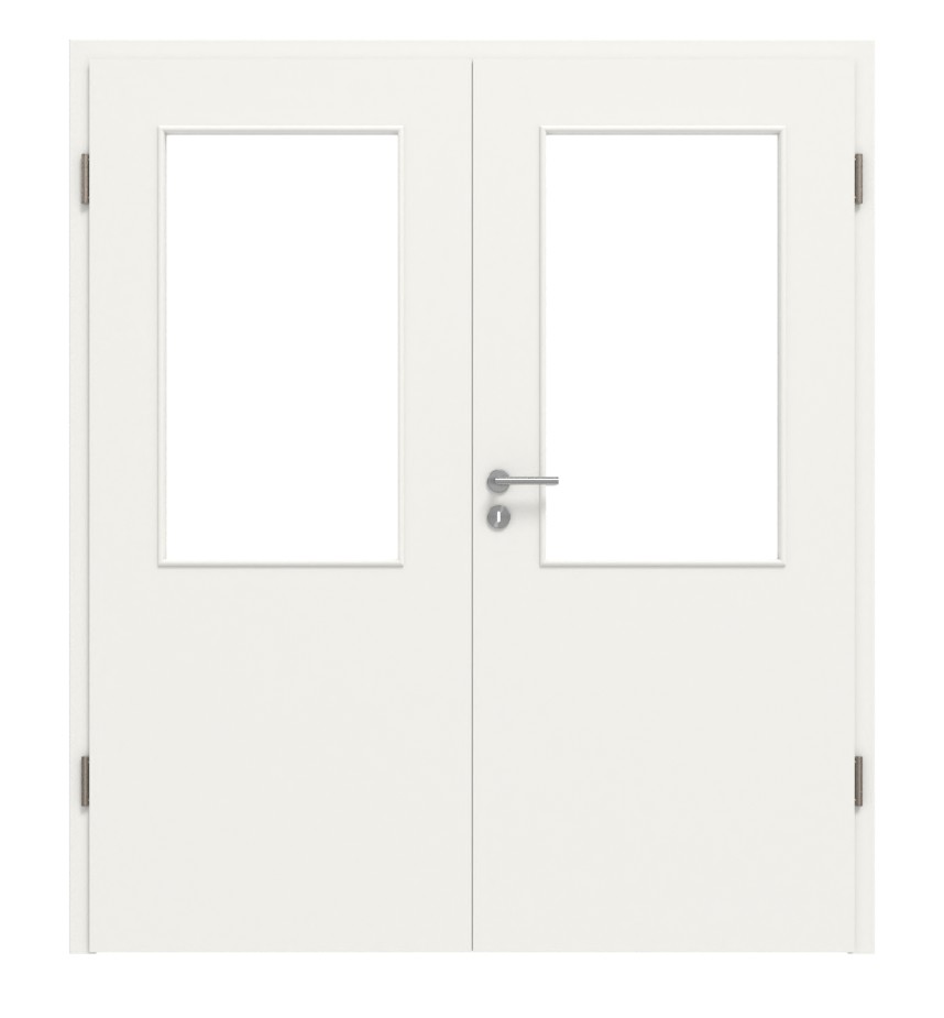 Malowane drzwi podwójne ProLine w RAL 9016 z pełną płytą wypełnieniową i trzema zawiasami: