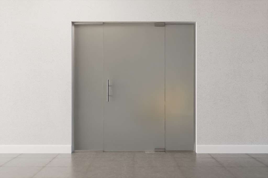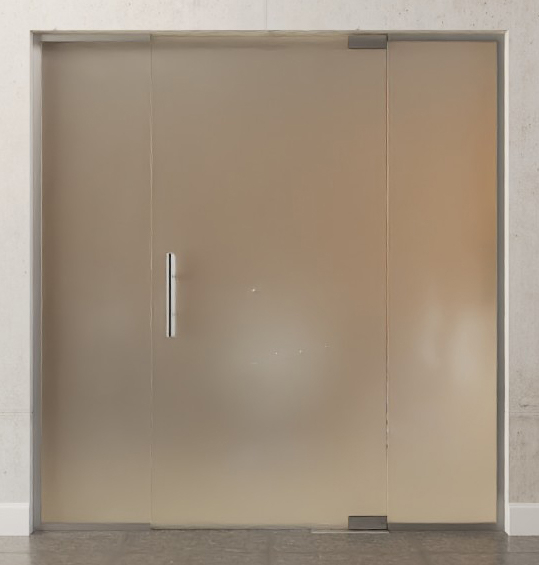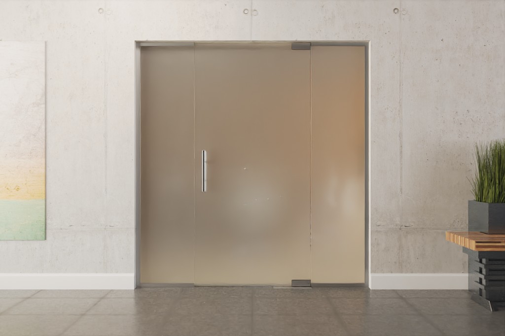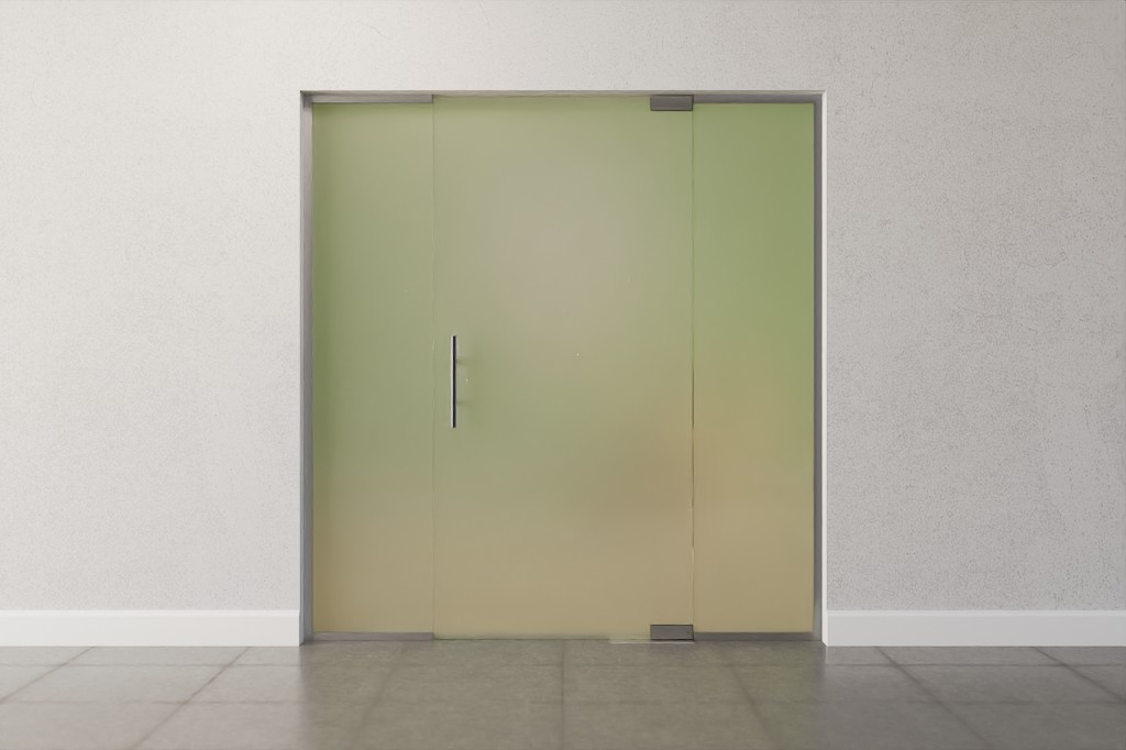 Wysokiej jakości drzwi przeszklone z podwójnymi stałymi bocznymi elementami z specjalnie pokrytego szkła hartowanego: