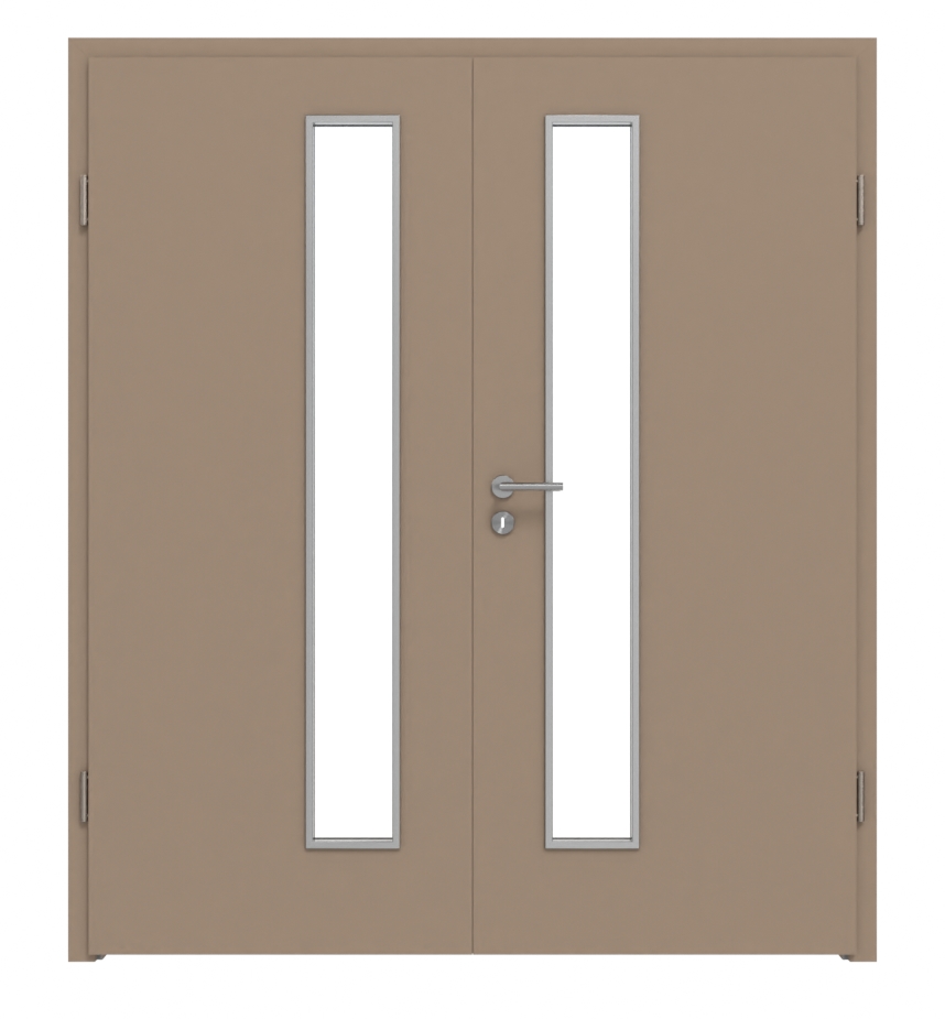Widok frontowy marki WESTAG drzwi dwuskrzydłowe Acciaio Hamilton FX 5000 Fenix NTA z przeszkleniem LA-1D od strony zamka wraz z ościeżnicą