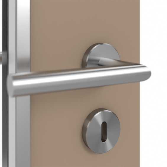 • Standardowe wykonanie kasety zamka: Zamek pokojowy BB klasa 1, trzpień 55 mm, czoło w kolorze srebrnym