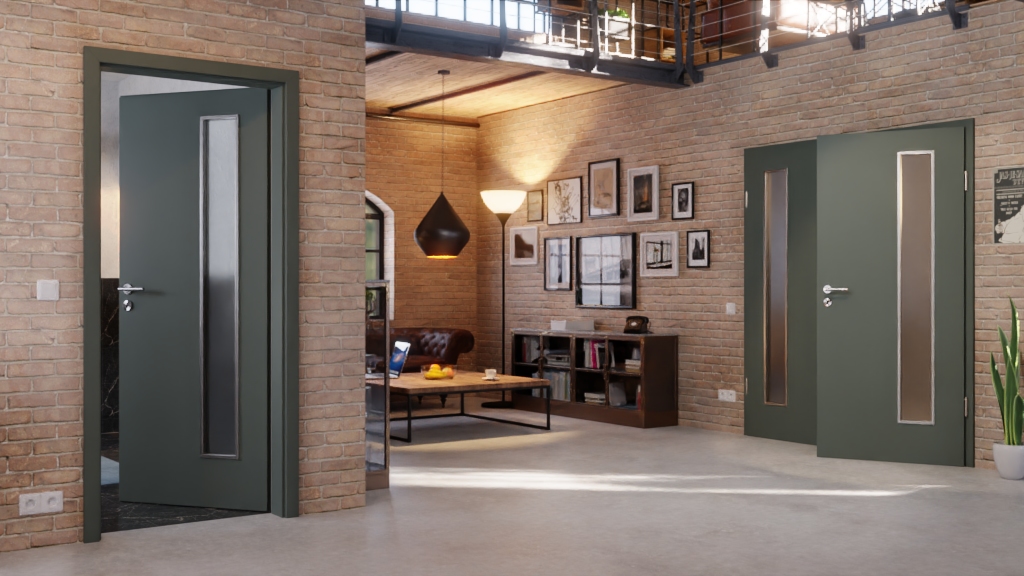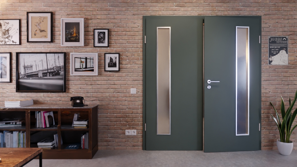 Drzwi dwuskrzydłowe z płytą wiórową otworową wewnątrz:
