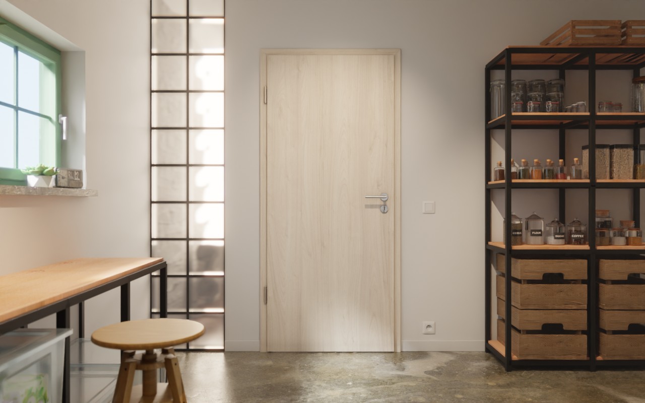3 mm grubości płyta wierzchnia i pełne wzmocnienie nadają drzwiom dźwiękoszczelnym stabilność. Aby zminimalizować hałas w pomieszczeniach, model wyposażony jest w opadający uszczelniacz podłogowy. Trójczęściowe zawiasy pewnie mocują skrzydło drzwiowe z kanciastymi krawędziami w ościeżnicy.