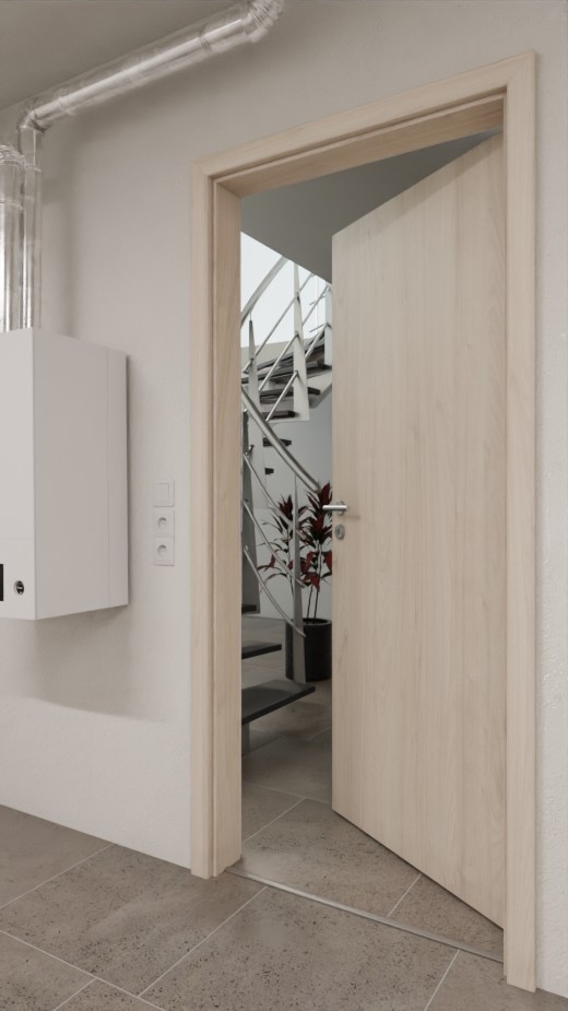 Dzięki specjalnej wkładce termoizolacyjnej i obniżanej uszczelce podłogowej zaoszczędzisz na kosztach energii z funkcjonalnymi drzwiami. Zamek i trzyczęściowe zawiasy są częścią standardowego wyposażenia.