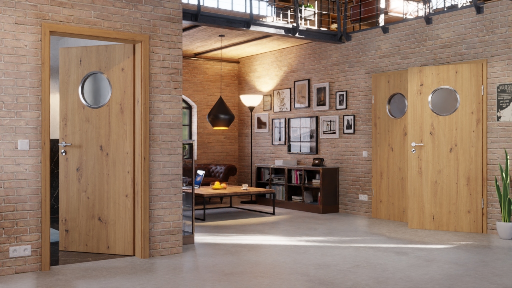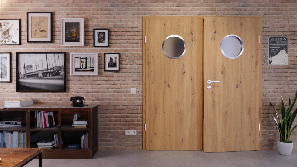 Eleganckie drzwi wewnętrzne z niezawodnymi zawiasami i odporną na zarysowania okleiną drewnianą:
