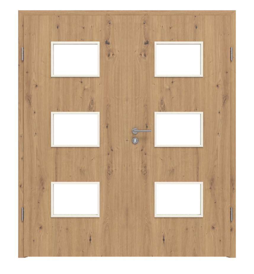Drzwi wewnętrzne podwójne z ramą i odpornym na ścieranie dekoracyjnym CPL: