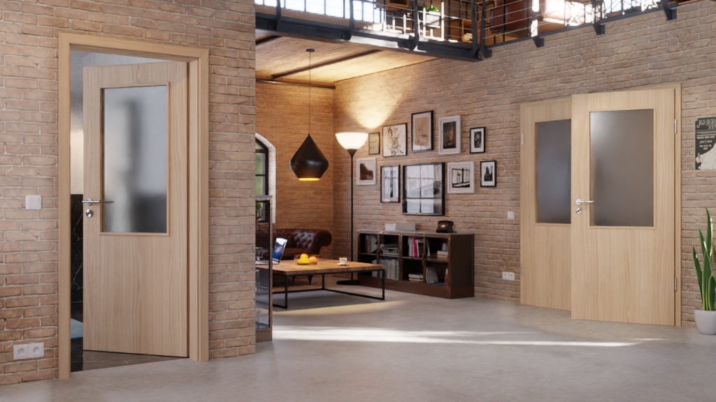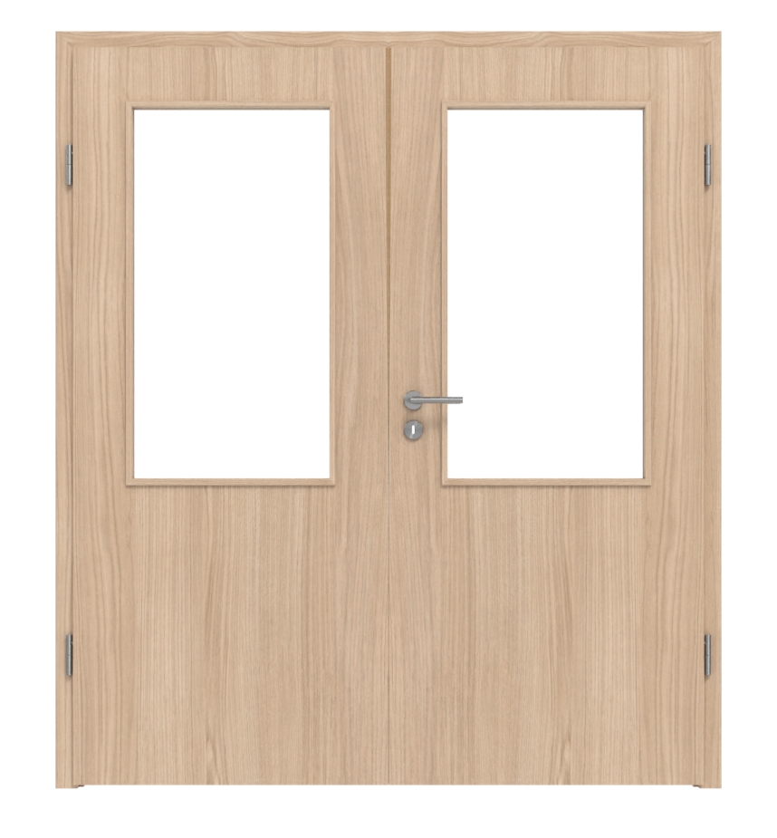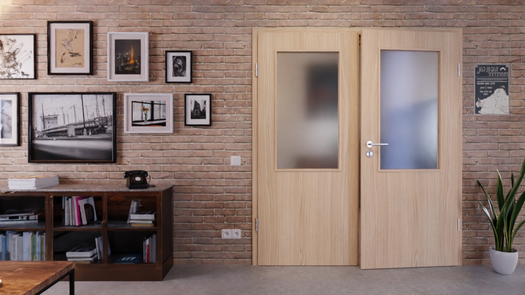 Atrakcyjna podwójna drzwi z prostymi krawędziami i odporną na zarysowania dekoracją drewnianą: