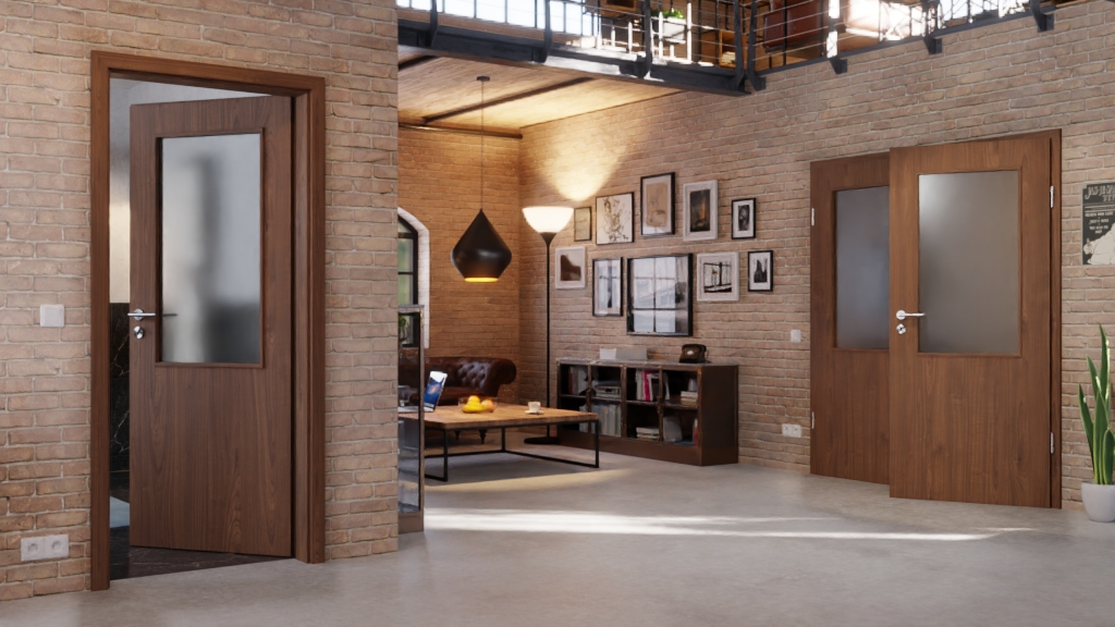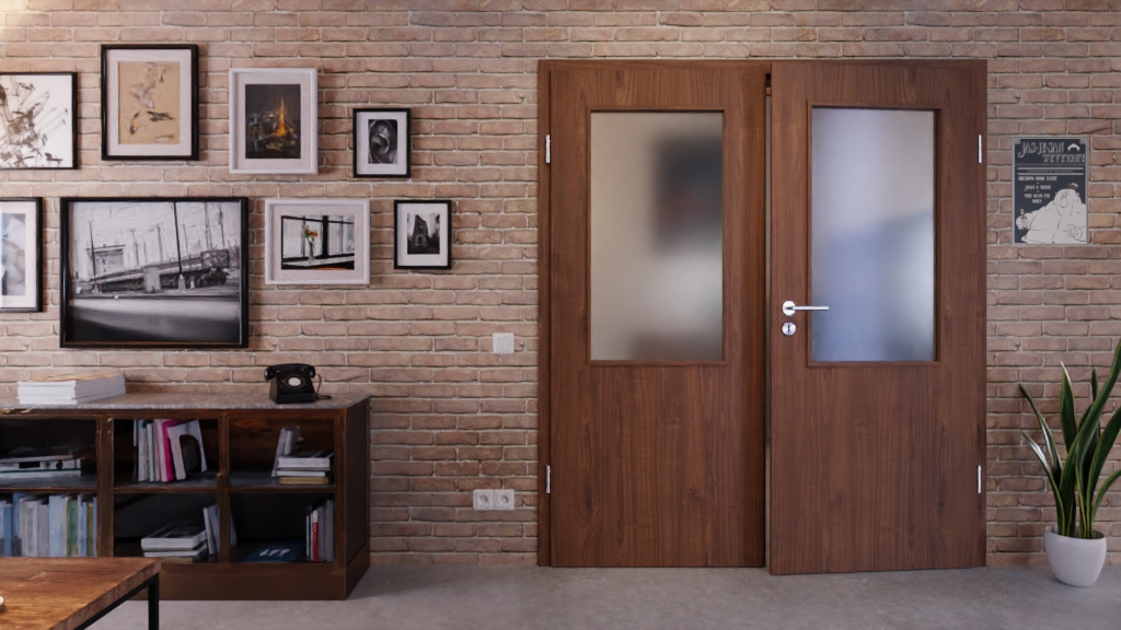 W rdzeniu znajduje się płyta wiórowa. 3 mm grubości płyta wierzchnia zamyka model. Trzyczęściowe zawiasy niezawodnie łączą oba skrzydła drzwi i zawartą ościeżnicę. Standardowo dostarczane są uchwyty zawiasów, zasuwa i uszczelka ościeżnicy.