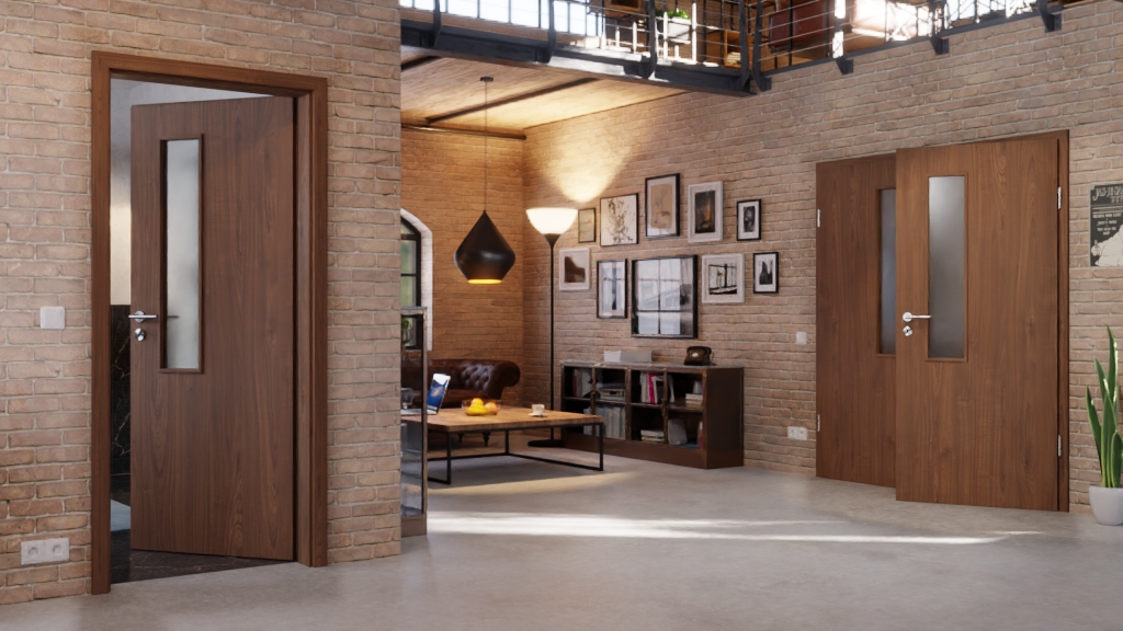 W rdzeniu znajduje się płyta wiórowa. 3 mm grubości płyta wierzchnia zamyka model. Trzyczęściowe zawiasy niezawodnie łączą oba skrzydła drzwi i zawartą ościeżnicę. Standardowo dostarczane są uchwyty zawiasów, blacha zamykająca i uszczelka ościeżnicy.