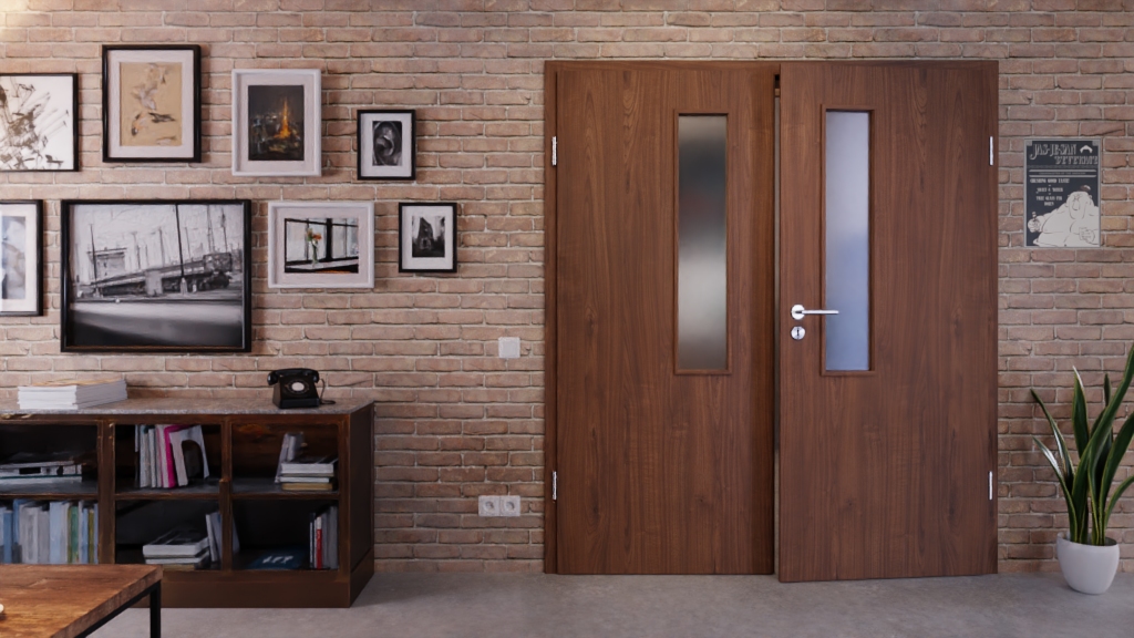 Atrakcyjna podwójna drzwi z prostokątnymi krawędziami i odporną na światło powierzchnią CPL:
