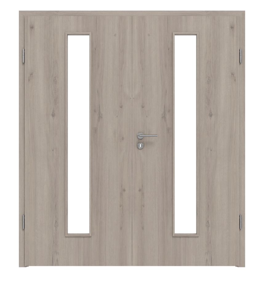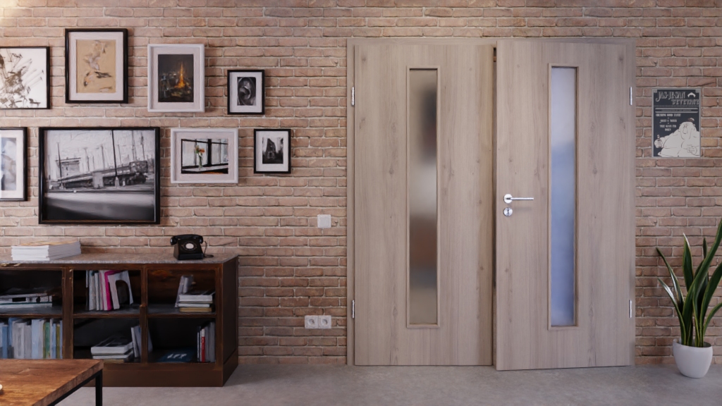 Drzwi wewnętrzne podwójne z trzema zawiasami i mocowaniami zawiasów: