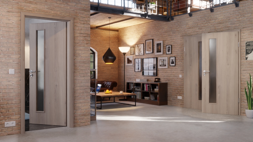 Urokliwa drzwi wewnętrzne z ościeżnicą i odpornym na zarysowania dekorem drewnianym: