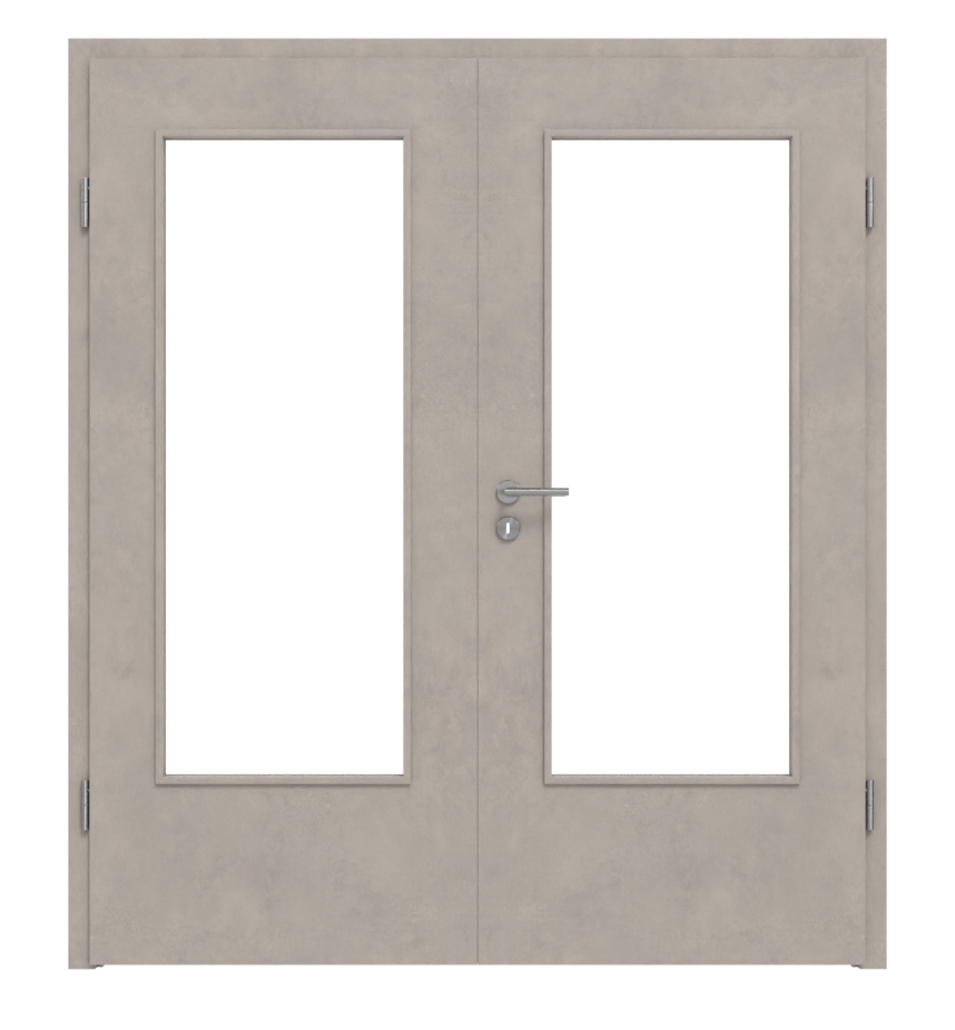 Przytulne mieszkanie w podwójnym wydaniu: Drzwi podwójne w kolorze Semento BN 434 z serii PortaLit od Westag elegancko otwierają Twoje przestrzenie.